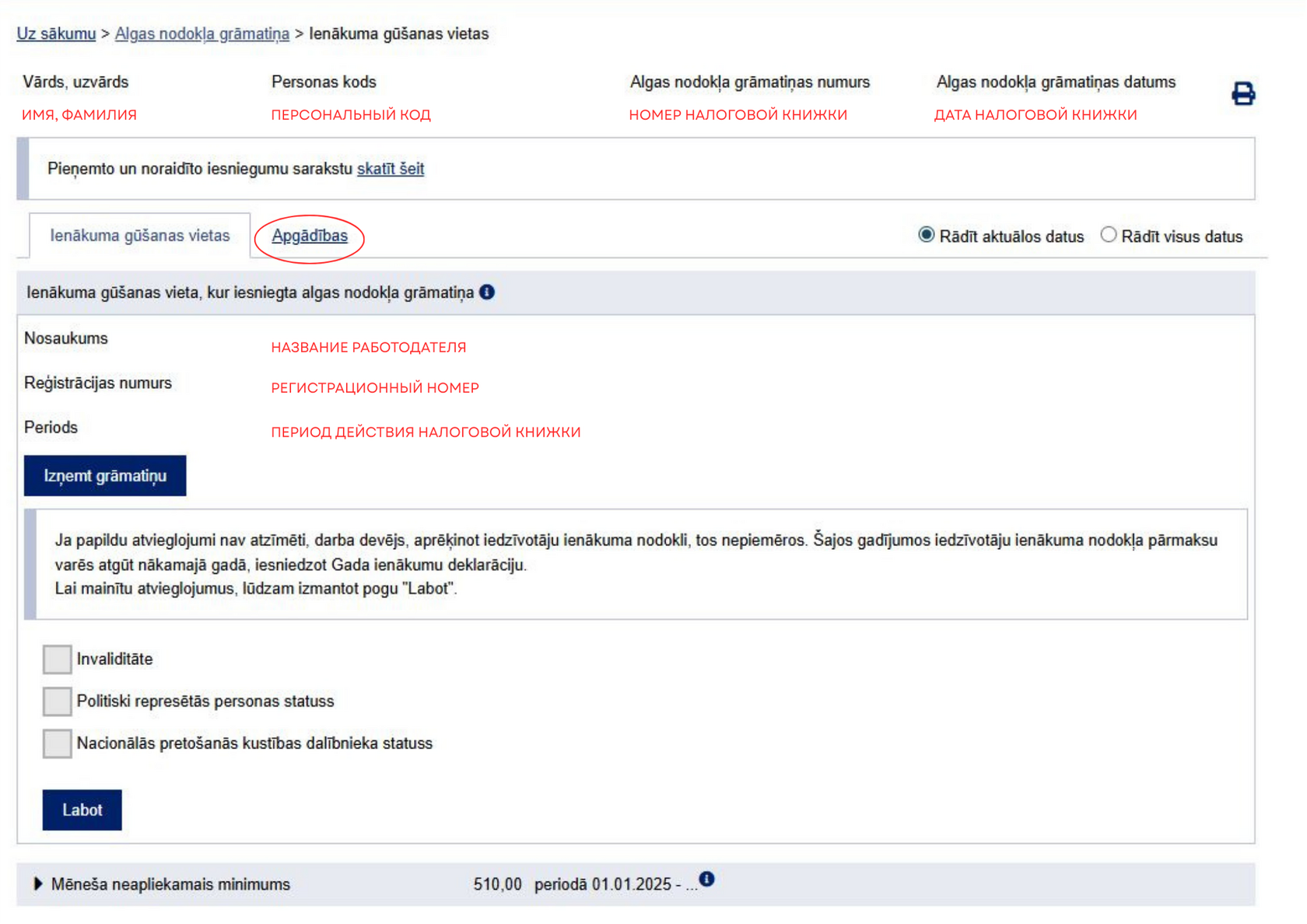 Работник может подать налоговую книжку в системе электронного декларирования Службы государственных доходов (VID EDS). Доступ к налоговой книжке имеет только сам работник и СГД.